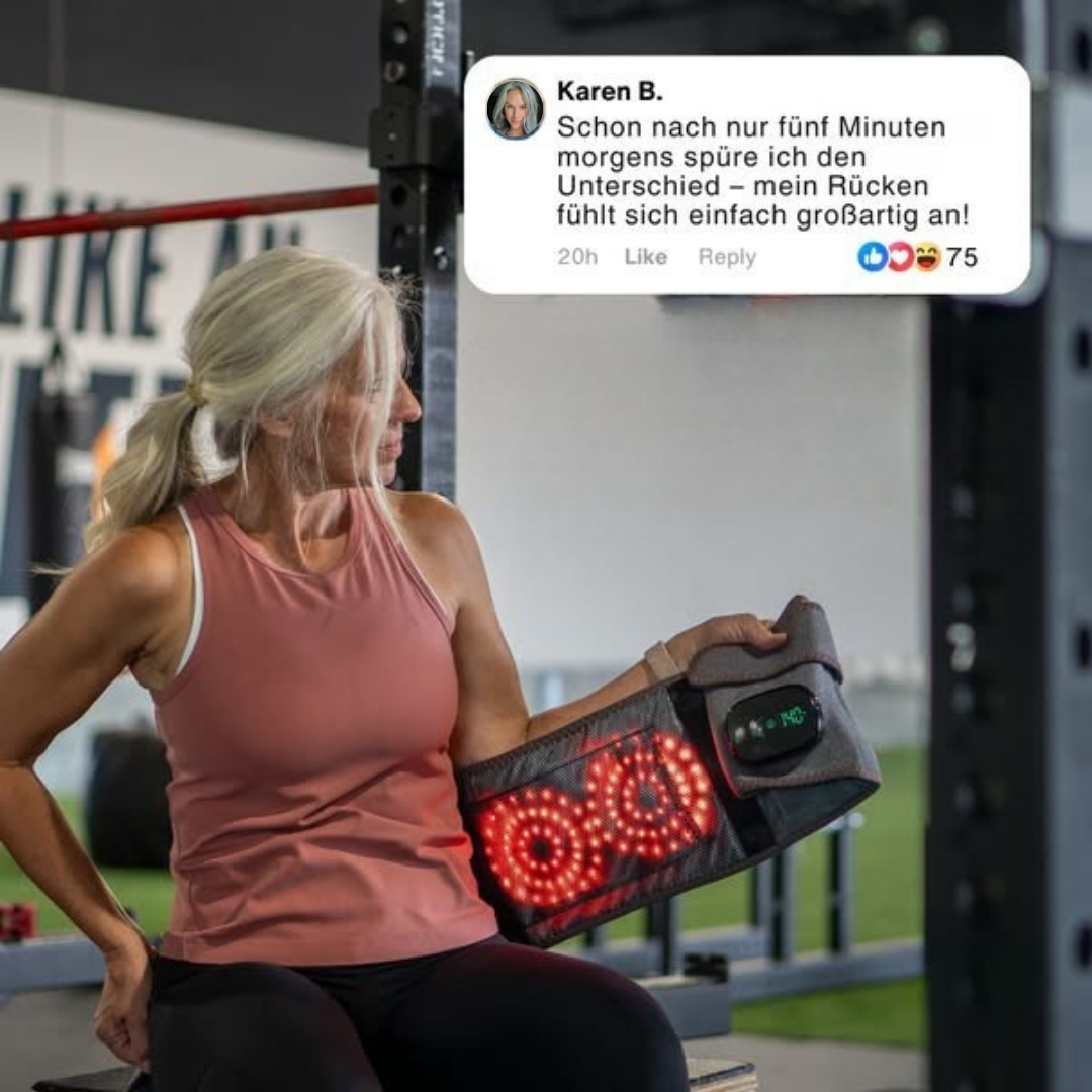 - ✔️ Infrarot-, Wärme- und Massagefunktion – Die drei Säulen der Regeneration, alle vereint im Infrabelt. Erlebe, wie deine Rückenschmerzen verschwinden und du endlich wieder schmerzfrei durch den Tag gehst.